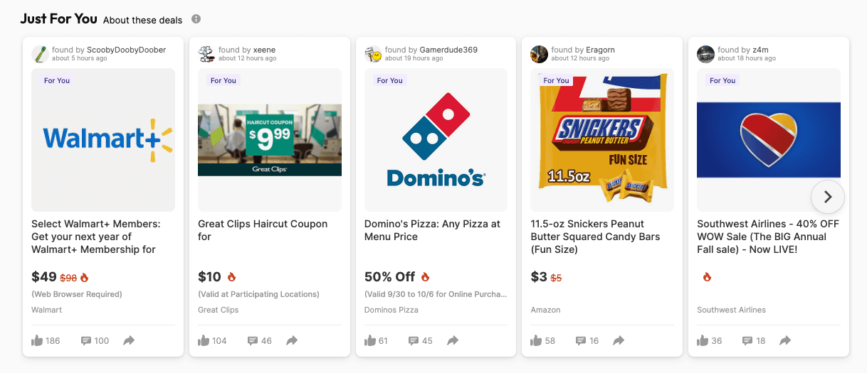 “Just For You” Section: A highly personalized section featuring hand-picked deals for individual users.