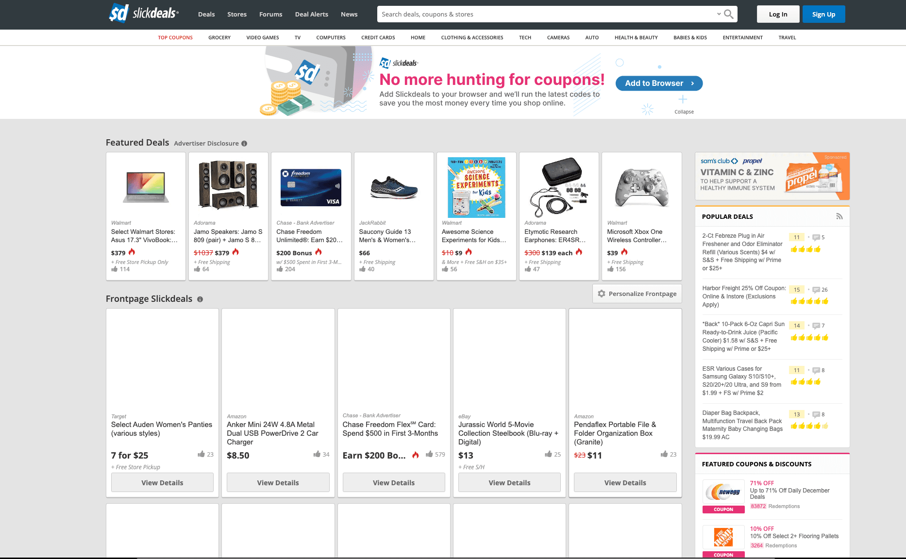 Color Palette: Leveraged Slickdeals' existing blue and white color scheme but added accent colors (like red for time-sensitive deals) to create urgency.
