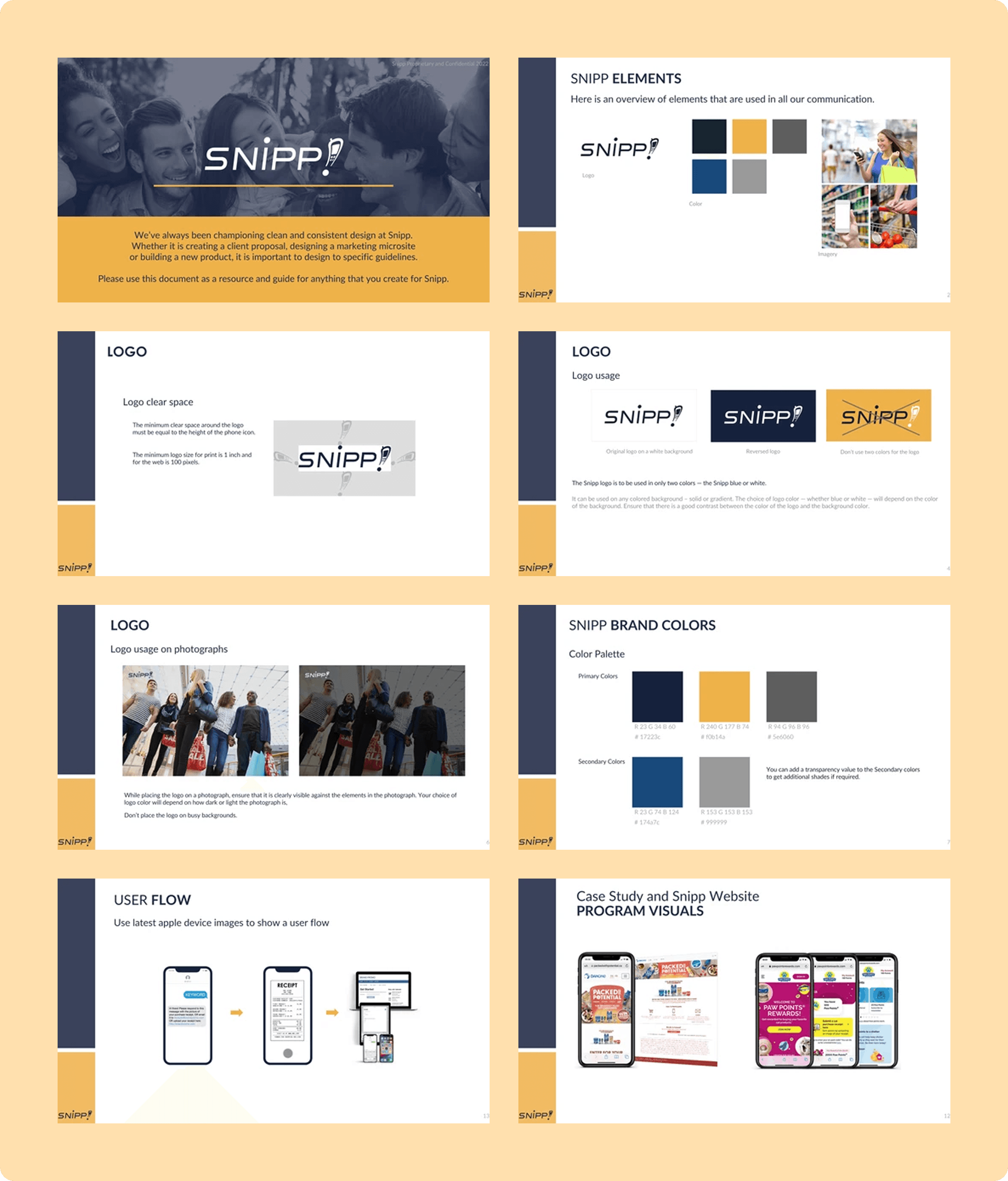 By leveraging these guidelines, we was able to create a visually appealing design that not only showcased Snipp Rewards' playful and engaging personality but also maintained a consistent and intuitive user experience.